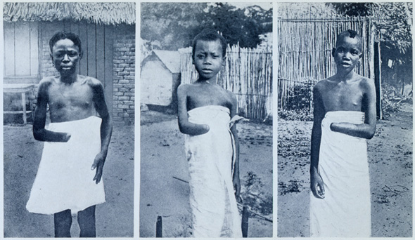 8. This photograph above was taken in 1905. This is an image of three Congolese young boys with one hand each. Their hands were cut off because they did not reach the number of rubber collections that was given to them. Consequences of not reaching the quotas resulted in King Leopold II, colonizer of the Congo region of Central Africa at this time, dealing with them. The way he cruelly punished these innocent people was by torturing them with a slow and painful death. He would cut off ligaments, limbs, genitals and several other body parts. He would do this to men, women and even children. He ruled the Congo for 23 years and killed millions of Congo people within that time span. This photograph is relevant to the course because it vividly conveys the cruel things that would happen while Africa was being imperialized.